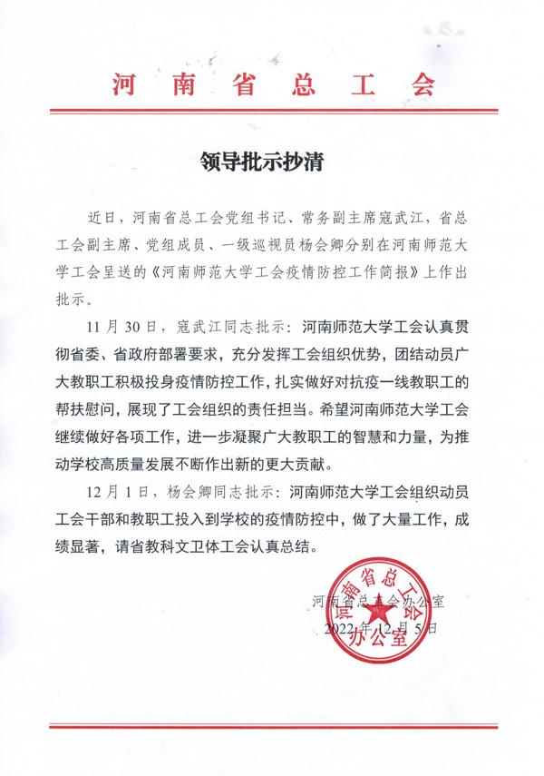 我校工会疫情防控工作受到河南省总工会领导表扬