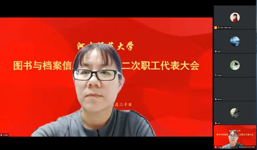 12月30日上午,图书与档案信息中心召开第四届二次职工代表大会云端会议,共商中心发展大计。中心19名职工代表参加会议,会议由中心分工会主席王瑞珍主持。