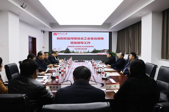 2月28日,河南省总工会副主席、党组成员、一级巡视员杨会卿,河南省教科文卫体工会主席张学勇、一级调研员郑锦顺、副主席白锟莅临我校,就新时期工会工作进行调研。校党委副书记、工会主席梅宪宾及校工会等相关人员陪同。