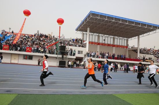 上午九时五十分,教职工异程接力赛作为第一项比赛项目在西区运动场开始。本次比赛为1000米接力赛跑,每队由四名队员分别完成400米、300米、200米和100米的赛程,其中200米须由本单位女教职工完成,100米须由本单位处级干部完成。异程接力作为传统表演性项目,通过竞技与娱乐,达到展现各单位实力与风采的目的。最终,数学与信息科学学院获得冠军、图书与档案信息中心工会获得亚军、马克思主义学院获得季军。
