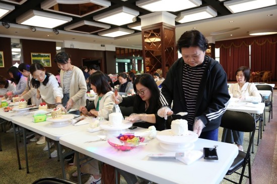 第二部分开展“花式宠您、甜蜜在心”感恩母亲节特色DIY活动,进行蛋糕和花篮DIY制作。在专业老师的指导下,女老师们充分发挥想象力和创造力,亲手制作独特甜蜜的蛋糕,插出美丽漂亮的花篮,现场花香四溢,气氛十分甜美,到处洋溢着幸福和快乐,以实际行动表达对母亲的浓浓爱意,弘扬感恩家风,传承孝善文化。