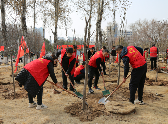上午九时,支部党员来到了新乡市牧野公园,志愿参加由新乡市园林绿化中心、东区公园服务中心主办的“践行生态文明,建设美丽公园”植树节活动。在园林绿化中心技术人员的指引下,大家挽起袖子铆足劲,挖坑、插苗、填土、踩实、浇水,每道工序都在默契配合之下有条不紊地进行,现场一派热火朝天的景象。经过一个多小时的辛苦劳作,一棵棵新栽植的海棠树迎风而立,展现勃勃生机。经过园地劳动,大家露出了些许劳累,但是热情还很高涨,纷纷表示,植绿护绿是中华民族传统美德,我们要牢固树立绿水青山就是金山银山的理念,积极参加义务植树活动,争做生态文明建设的实践者、推动者。