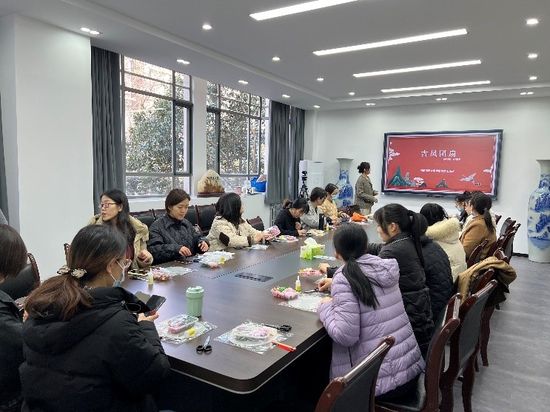 本次活动邀请专业老师进行现场教学,深入讲解手工团扇技艺之美。活动伊始,指导教师详细介绍手工团扇的历史渊源、文化内涵以及制作工艺。在制作环节,女教职工融合自己的巧思,从挑选材料,到构图设计,再到粘贴装饰,利用各式各样的花朵和叶子勾勒心中意境。在一粘一合之间,将“生活艺术化、艺术生活化”理念融入其中,一件件作品逐渐成形,尽展精巧与柔美。经过每位老师辛勤努力,一把把融入中国传统文化意境美、诗意美以及美好祝福的团扇制作而成,散发着独特的艺术魅力。活动结束后,女教职工意犹未尽,纷纷拿起心仪团扇争相合影。