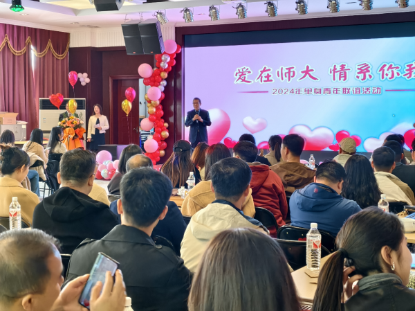 3月26日下午,“爱在师大 情系你我”单身青年联谊活动在我校教职工活动中心成功举办,来自河南工学院、新乡市部分机关单位和我校的104名单身青年参加了本次活动。校工会副主席任永利致辞。