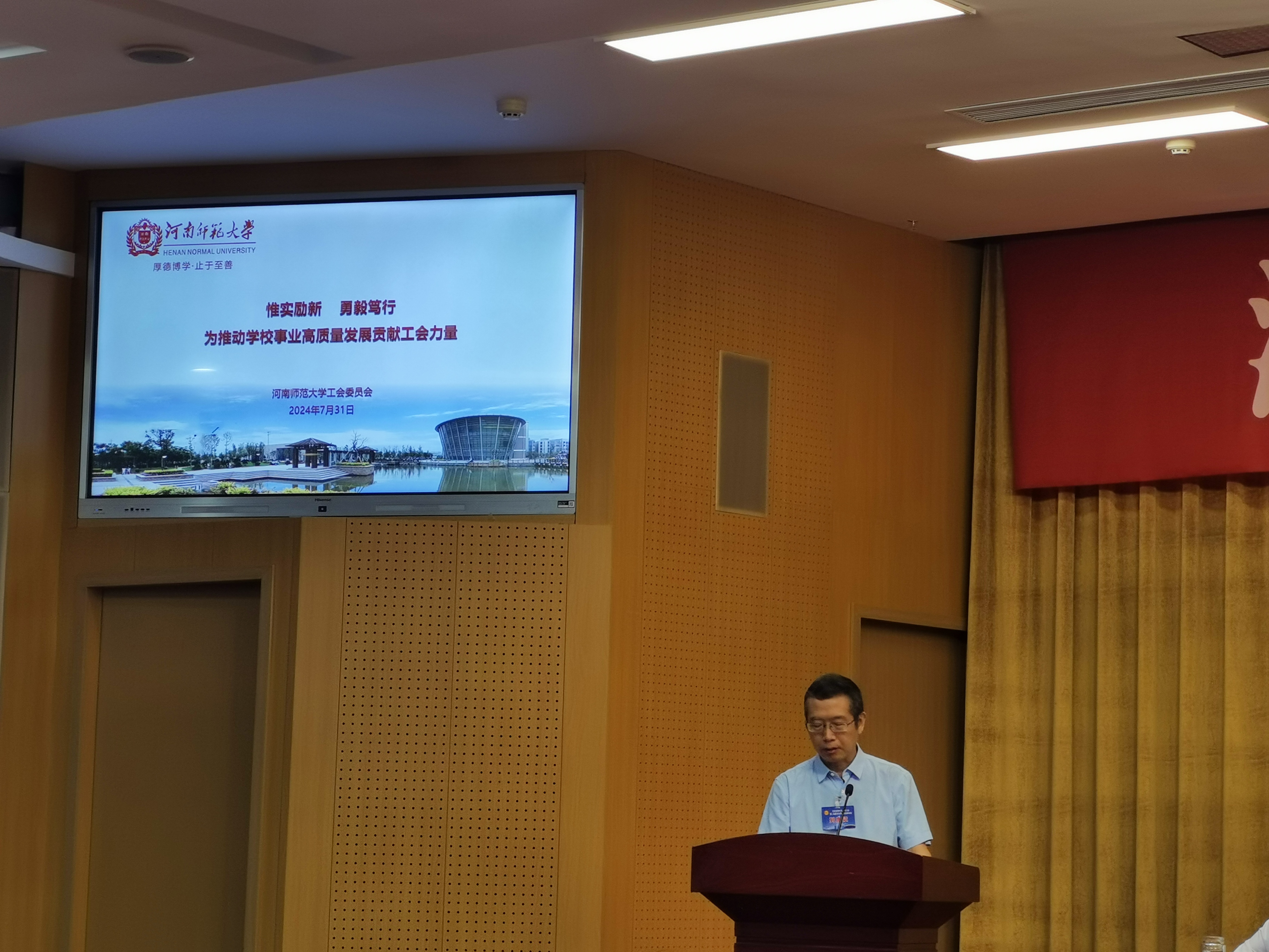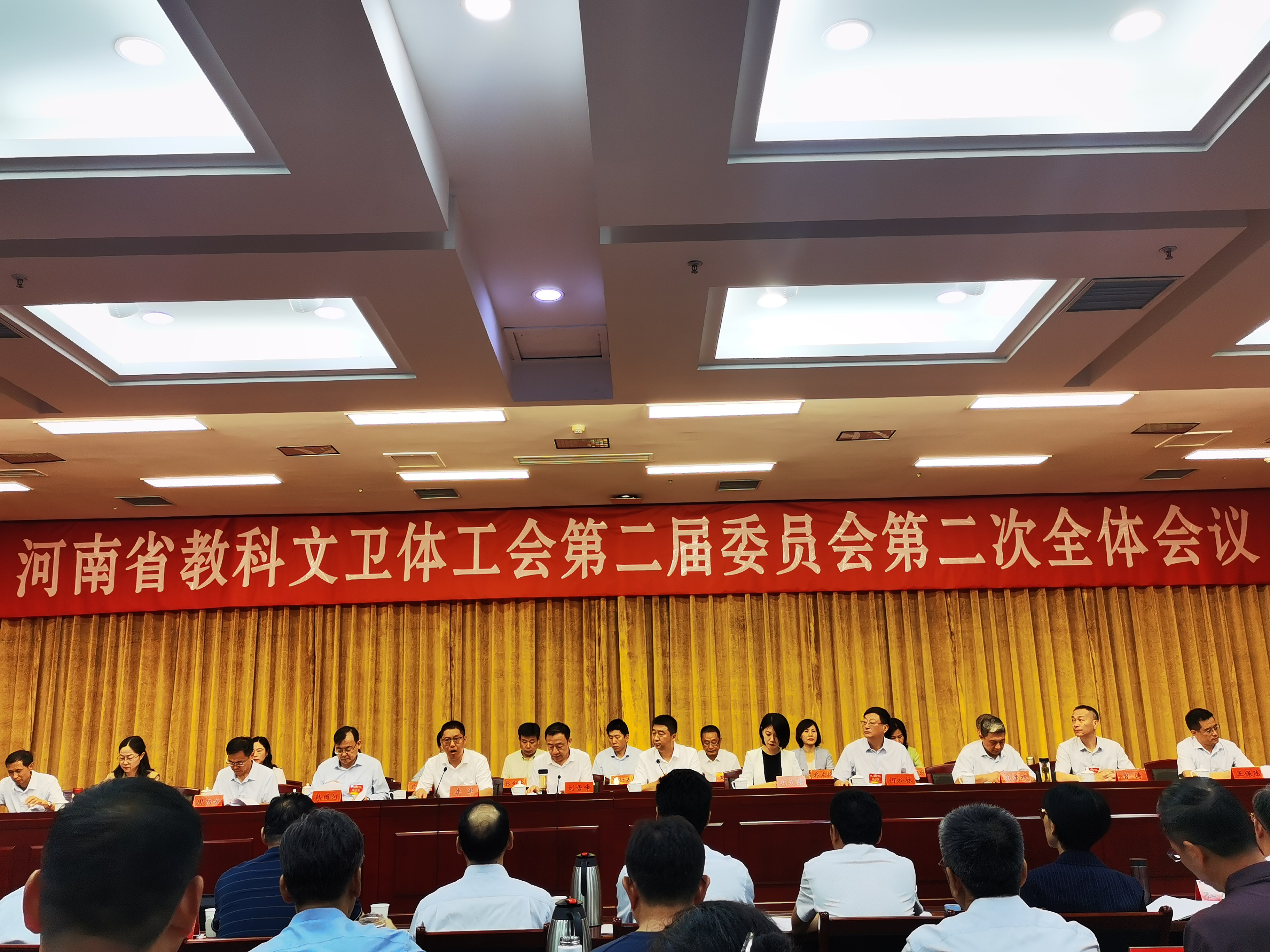 7月31日,河南省教科文卫体工会第二届委员会第二次全体会议在河南工会大厦一楼多功能厅召开,会议由省教科文卫体工会主席张学勇主持,河南省总工会副主席刘雪峰莅临会议并讲话。我校工会副主席任永利代表学校参会。