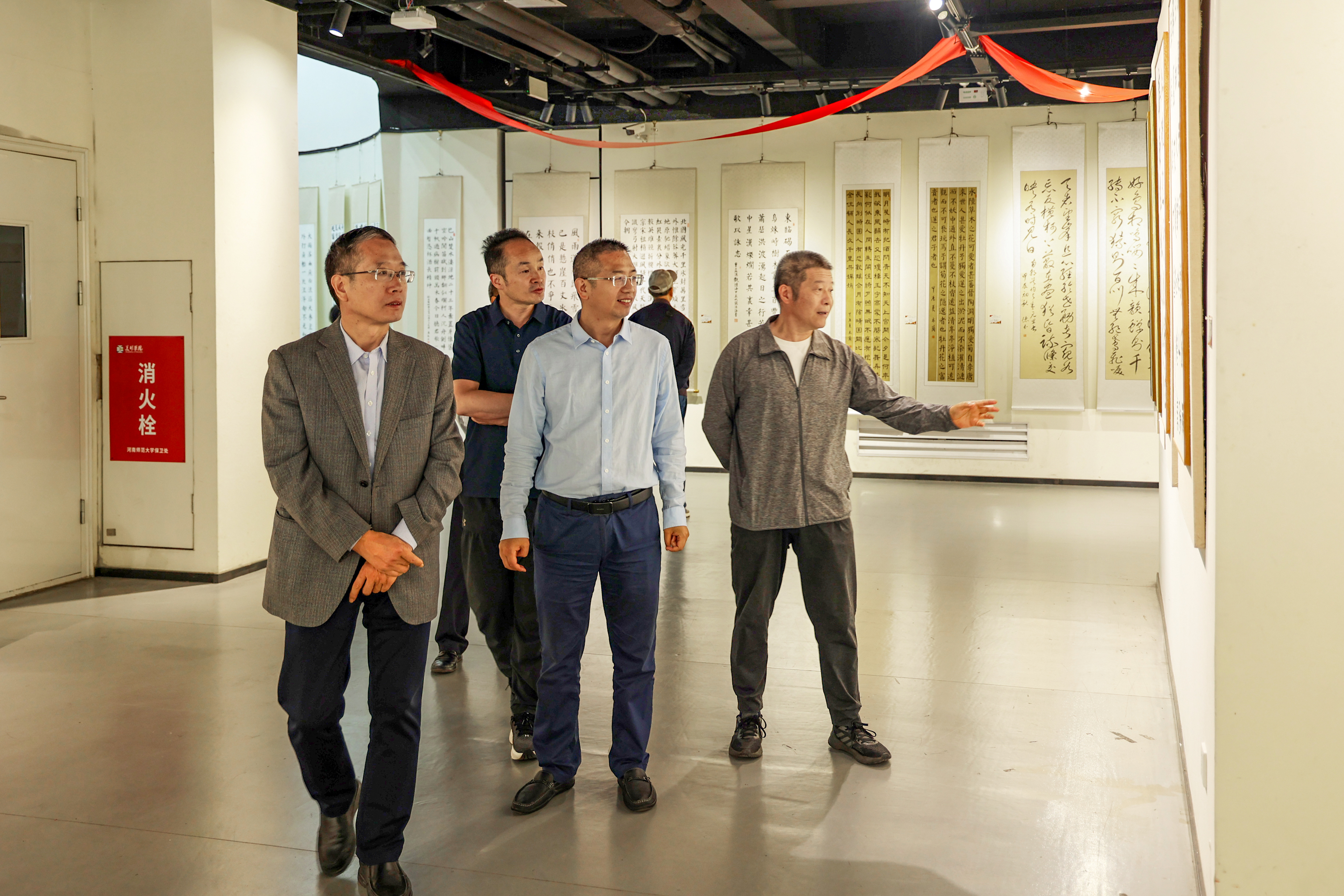 秦法跃指出,传承传统文化,展现艺术魅力,推动文化创新,是我们高校教育工作者的使命任务。中国书画艺术是中华民族传统文化瑰宝,广大教职员工用墨香歌颂祖国的繁荣昌盛,用油彩描绘祖国的壮丽河山,彰显了我校百年的厚重人文价值和历史文化底蕴。我们要站在新时代的文化高度,不断致力于艺术创造与中华文化价值融合,致力于中华美学精神和当代审美追求结合,创造出更多富有中华文化底蕴、审美神韵的优秀作品,传递新时代积极向上的中国精神、中国风格、中国气派。我们要牢记“精育良才、教育报国”的办学初心,紧紧围绕立德树人根本任务,为党育人,为国育才,在教育强国建设道路上不懈奋斗。