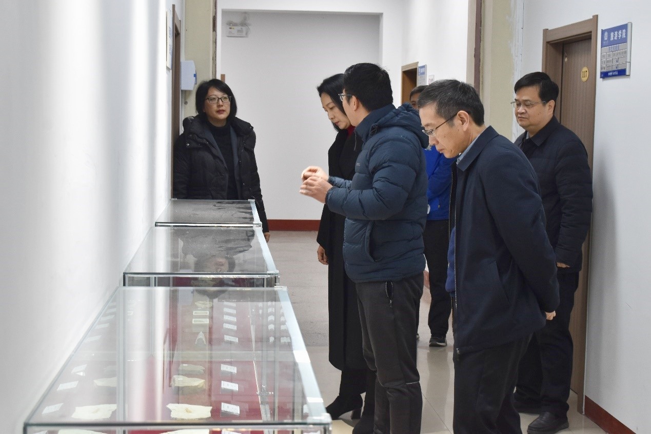 考察组在地理学博士曹家元的讲解下,实地参观了学院“矿物岩石标本馆教工之家”建设区域,并与教职工代表进行了交流。