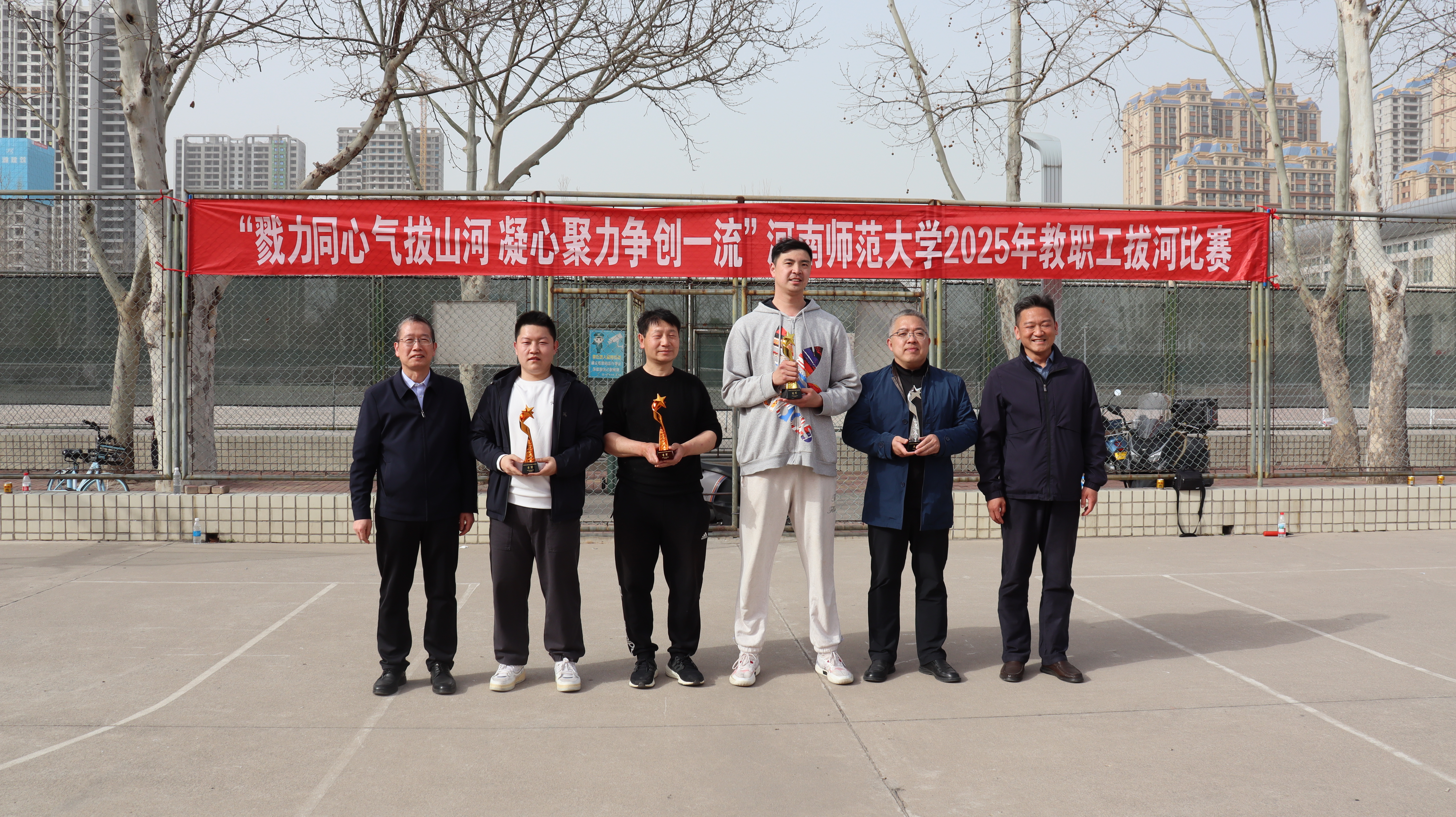 2025年3月25日下午,由校工会主办、体育学院承办,以“戮力同心气拔山河 凝心聚力争创一流”为主题的教职工拔河比赛在西校区篮球场举行,校工会副主席任永利、体育学院党委书记王允观摩活动并为获奖单位颁奖。