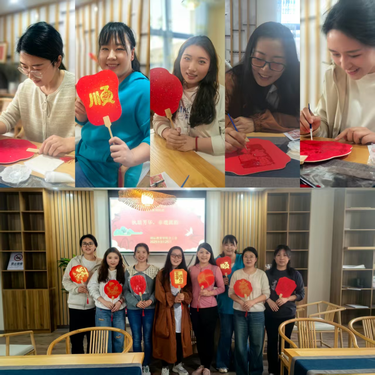 三月风暖,陌上春归。值此芳菲时节,国际教育学院分工会于3月25日下午在学院传承室举办国教人的美好生活三八活动月系列活动之“执扇芳华,非遗流韵”非遗团扇制作活动,学院全体女教职工齐聚一堂,以一场指尖上的非遗之约,为“三八”活动月增添一抹典雅韵味。