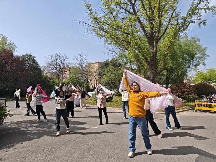 为丰富我院女教工的精神文化生活,展现教师们青春风采,4月1日上午,生命科学学院分工会在生科院西楼前成功举办“轻舞飞扬 纱韵流芳”纱巾舞活动。生科院女职工积极参加活动。