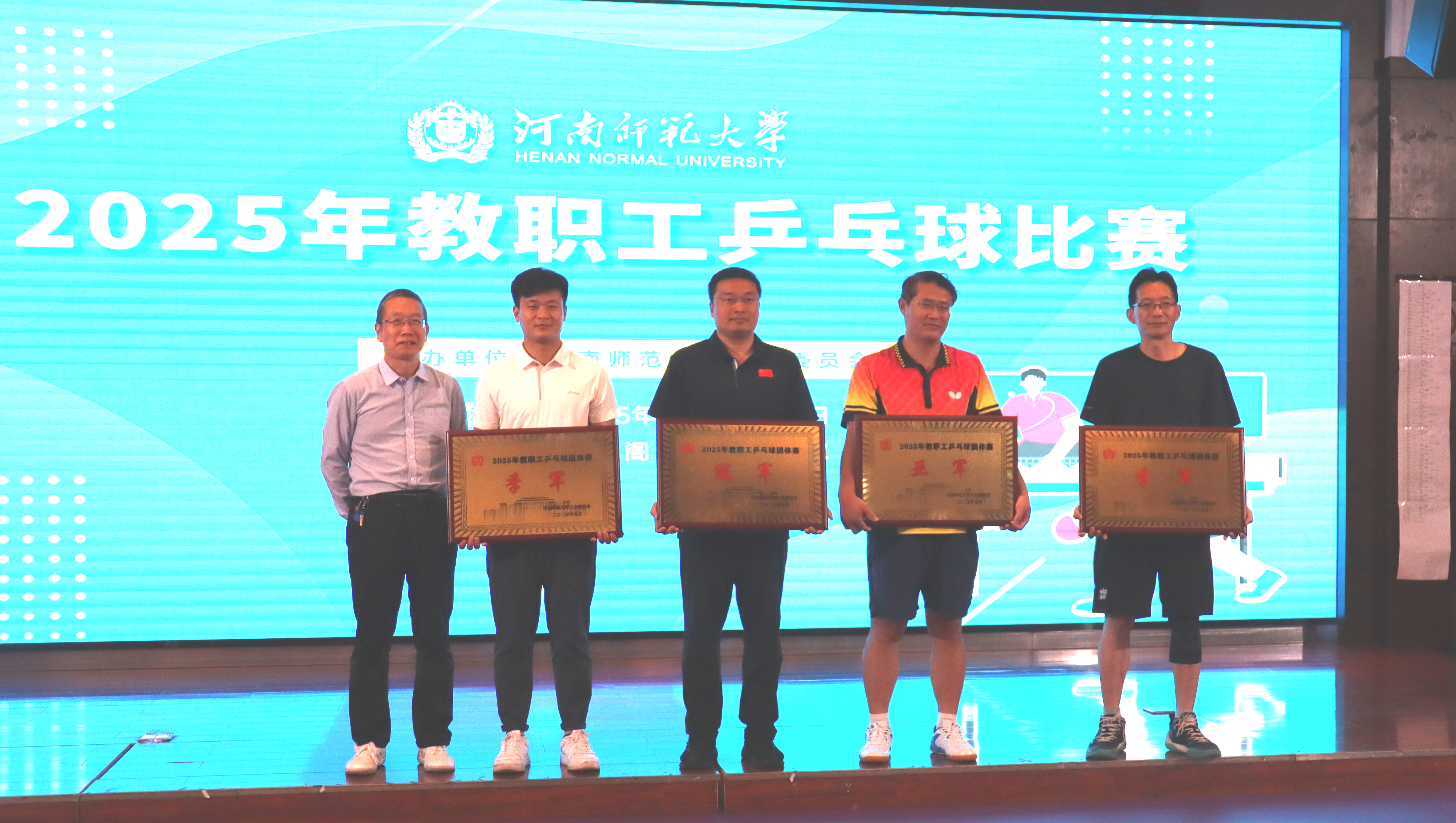 5月30日,由校工会主办的2025年教职工乒乓球比赛在文轩阁教工之家圆满落下帷幕。校学术副校长江智勇率队参加比赛,校工会副主席任永利为获奖团体及个人颁发奖牌。
