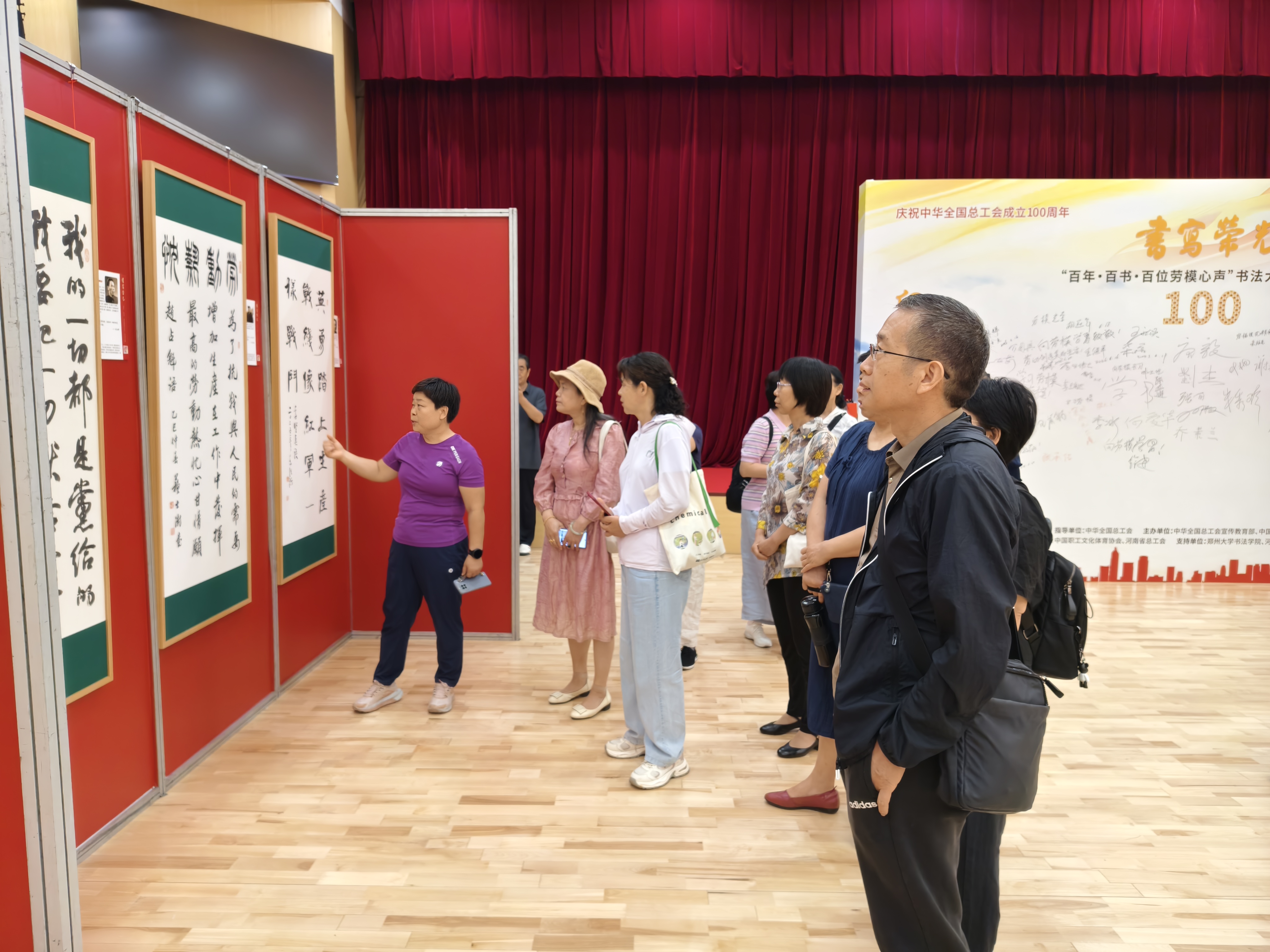 为全面贯彻落实党的二十大和二十届三中全会精神,纪念中华全国总工会成立100周年,弘扬“劳模精神、劳动精神、工匠精神”,6月21日,校工会党支部联合校教职工书画协会,赴河南省工会大厦,观看“书写荣光——百年、百书、百位劳模心声书法大展河南巡展”,共同开展“学习劳模精神 弘扬传统文化”主题党日活动。