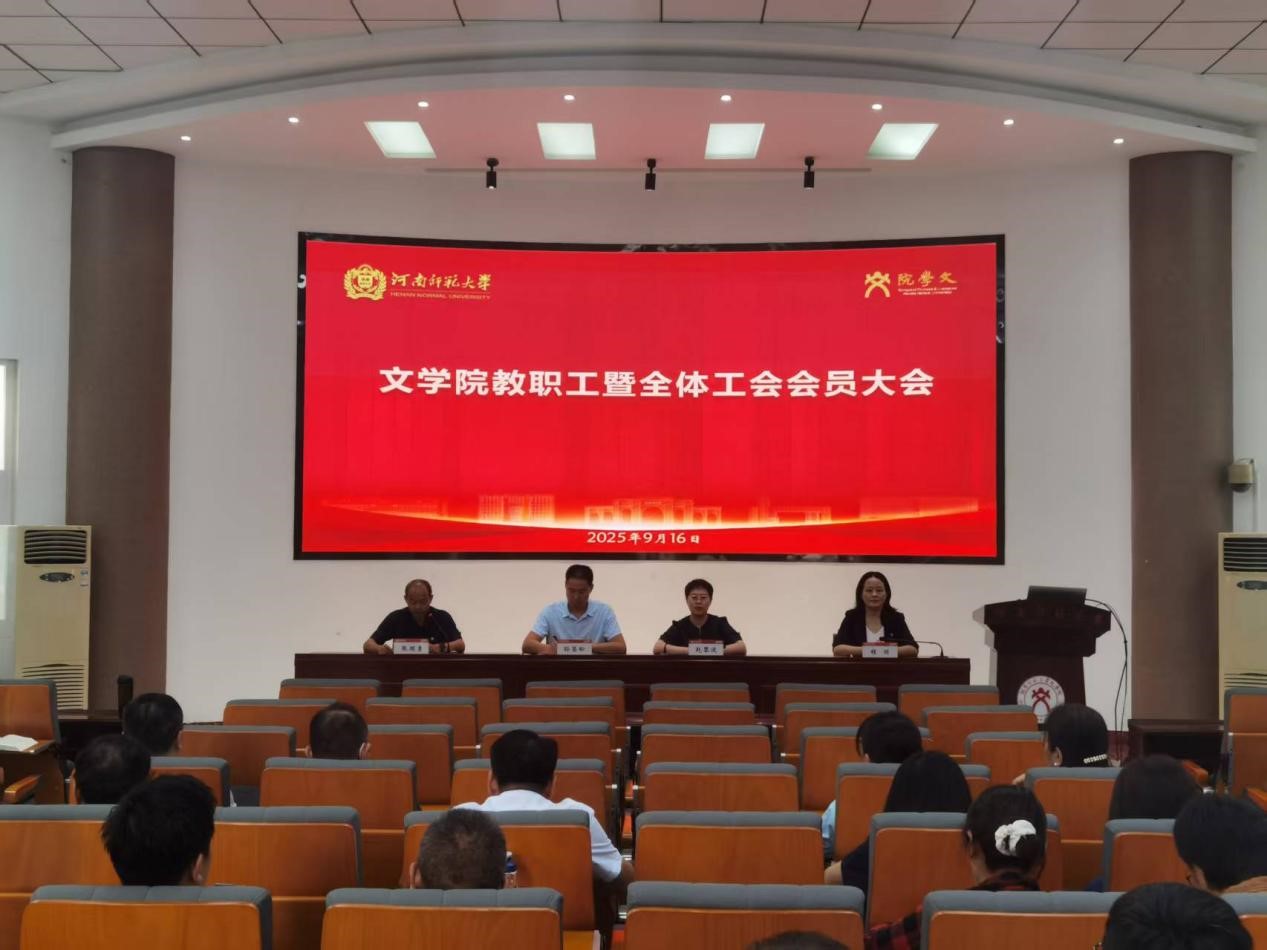 2025年9月16日下午,文学院在一楼报告厅召开教职工暨工会会员大会。学院党政领导班子、全体教职工参加本次会议。会议由学院分工会主席张颜勇主持。