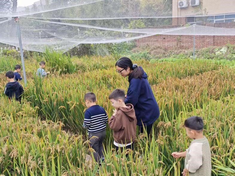 活动中,学院作物遗传改良组教师充分发挥学科特长,分“实验室探秘”与“田间实践”两大模块设计科普内容。在作物遗传改良与种质创制实验室,科研团队以“一粒米的奇妙旅程”为题,用童趣化语言讲解水稻遗传特性,通过实物标本、实验仪器演示等方式,引导孩子们触摸稻种、观察稻穗结构,直观感受“科技如何让米饭更香甜”。在水稻实验田,科研团队手把手教孩子们采摘稻穗,让孩子们在欢笑中理解“粒粒皆辛苦”的深刻内涵。活动现场欢声笑语不断,孩子们在劳动中收获了知识与成长,鼓励孩子们保持对自然科学的好奇心。