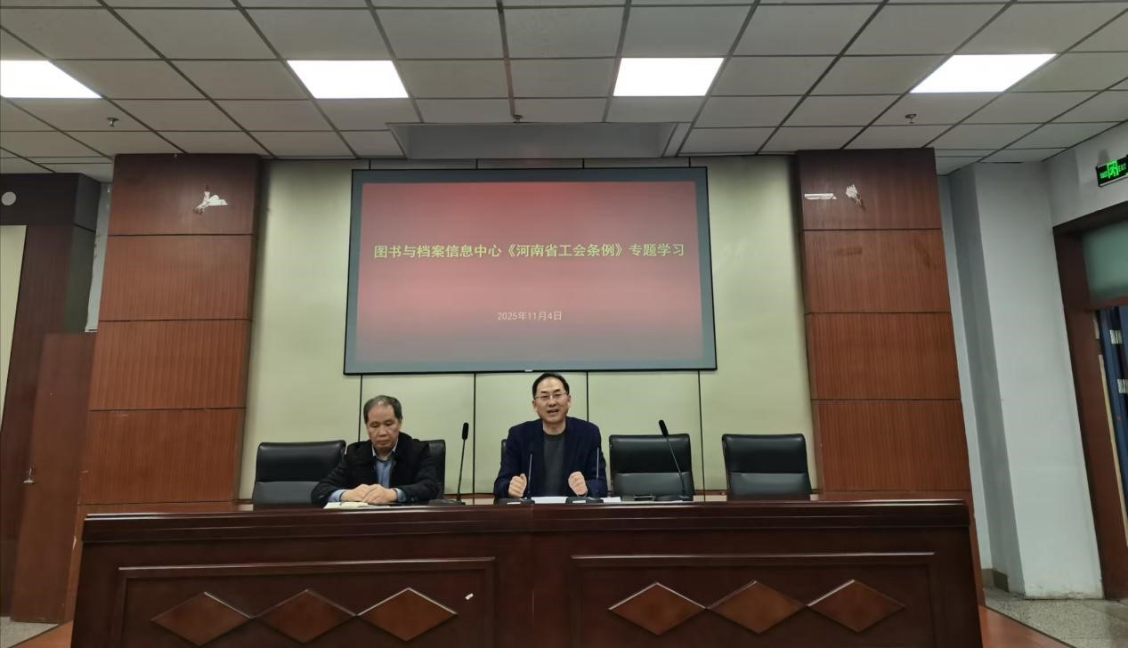 为深化职工对工会工作相关法律法规的认识与理解,11月4日,图书与档案信息中心召开会议,专题学习《河南省工会条例》暨河南工会百年奋斗历程会议上的讲话精神。中心全体职工参加学习,会议由党总支书记王鹏祥主持。