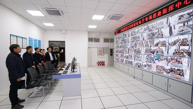座谈会结束后,梁存良及中心各部门负责人一起陪同刘长河一行到中心智慧教学演播室、虚拟教学演播室及教学资源制作部参观考察,然后到东区文昌楼的智慧教室、研讨教室、标准化考场巡查指挥中心、多媒体教室及督导听课室进行了实地考察。刘长河一行对我校的现代化教学设施建设与应用水平以及近年来信息化教学取得的成绩给予了高度评价。双方确定,在今后的工作中,进一步加强交流与合作,为推动信息技术与教育教学融合创新发展共同努力。