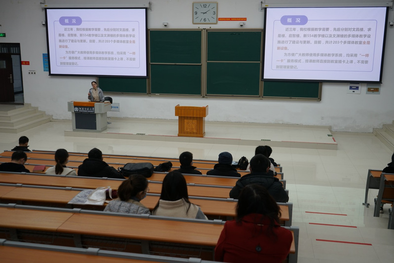中心按照学校教学工作要求于年前制订了《现代化教学工作方案》,根据《方案》要求和计划,利用开学前一周的时间对“一师一卡”系统和203个教室的设施设备进行了维护保养与功能调试,以满足常规多媒体教学的需求,并在此基础上,对全部设施设备进行功能的升级与优化,使每个教室都具有课内课外同步授课功能,保证因特殊情况不能到课堂上课学生的同步学习。