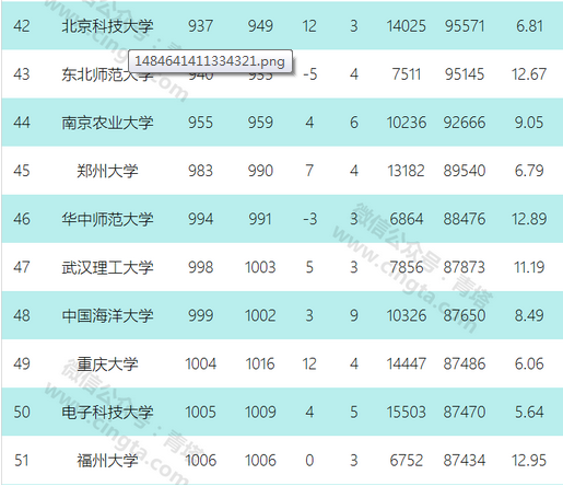 相比2016年11月份,部分高校国际排名有一定程度的进步。其中进步增幅最大的是南方医科大学,相比11月进步了32位。此外,进步较大的高校还有中国矿业大学、安徽医科大学、北京交通大学、西北农林科技大学、南昌大学、合肥工业大学等高校。