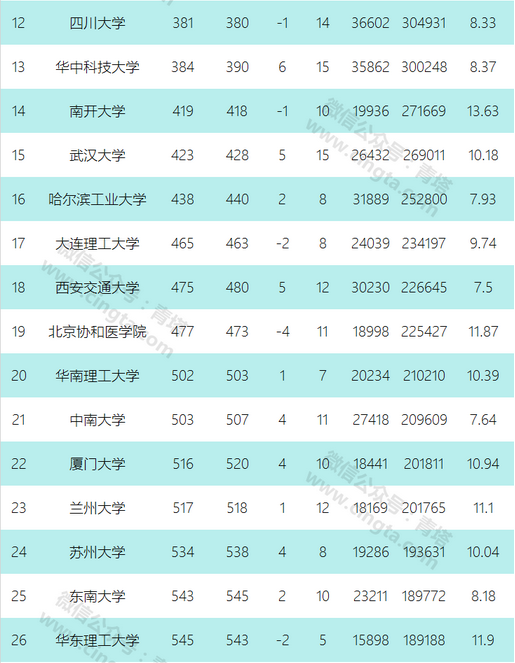 下面来看看各校综合排名情况(按照各高校论文总引用次数进行排名;中国地质大学、中国石油大学和中国矿业大学三所高校并没有区分两地办学的情况):