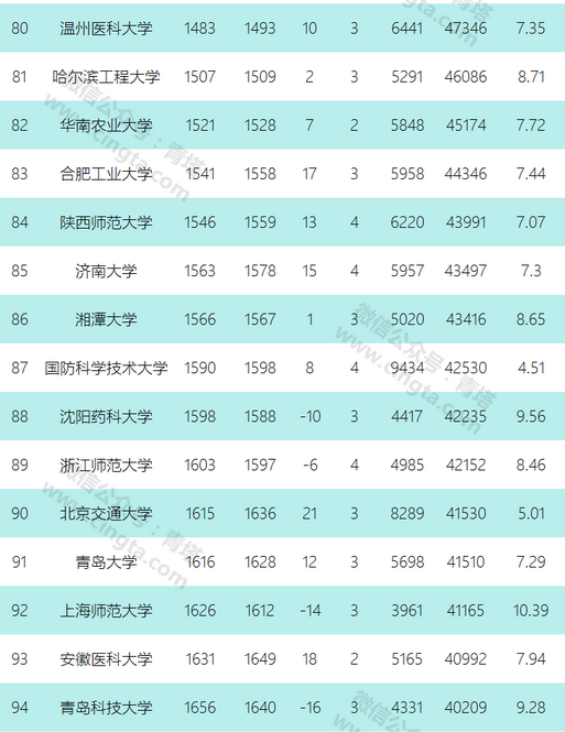 目前排名94,青岛科技大学是山东省属重点大学。原隶属于化工部,是国内第一家设计橡胶专业的大学,也是亚洲唯一的橡胶专业领域高校,被称为“橡胶工业的黄埔”。好的专业有材料科学与工程、化学工程与技术、化学、机械工程、动力工程及工程热处理,这些专业均具有博士后科研流动站。