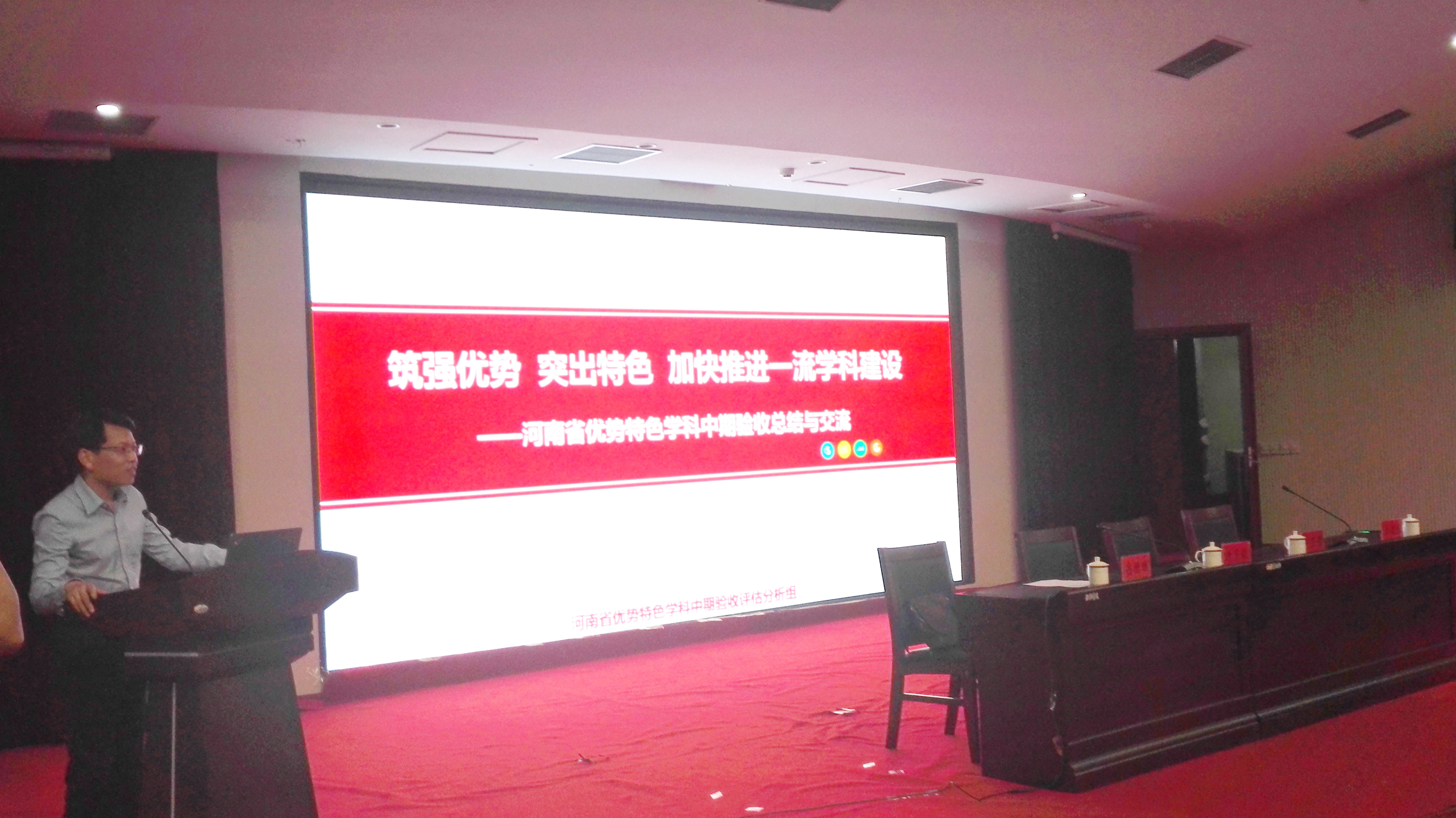 我校作为省优势特色学科中期考核评估分析组主要成员单位,受教育厅委托,以“筑强优势,突出特色,加快推进一流学科建设”为题做大会报告。对全省优势特色学科中期考核工作进行了全面的分析总结,根据专家反馈意见,对中期考核中存在的共性问题进行了深入的挖掘剖析,对优势特色学科后续建设和发展举措提出了积极建议。