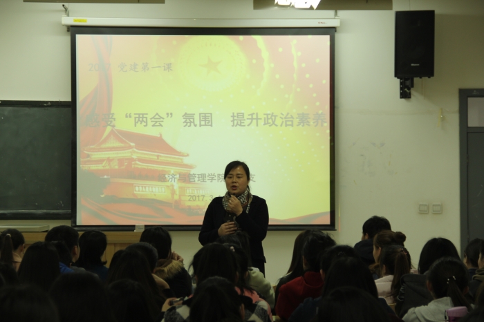 为弘扬“两会”精神,创新党建工作,提升党员政治素养,3月16日,经济与管理学院在向真楼316教室举办“感受‘两会’氛围,提升政治素养”党建专题学习活动。学院党委学生工作部部长杨萍老师作为特邀嘉宾出席了活动,经济与管理学院全体党员同志及学生代表参加了本次学习。会议由院系党总支副书记赵明主持。