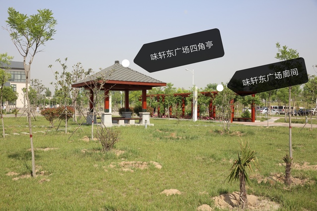 4.味轩东广场红色木质四角亭及木质红色廊间命名。