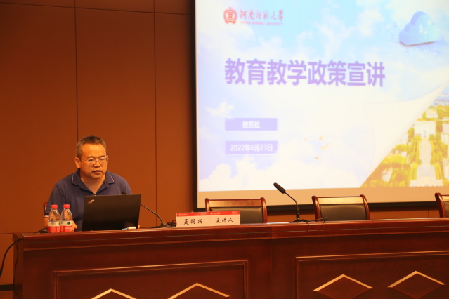 6月23日下午,教务处处长聂国兴教授应邀到新联学院进行教育教学政策宣讲,学院领导、教务处成员、全体专兼职教师参加了此次宣讲活动,活动由卢海燕副院长主持。
