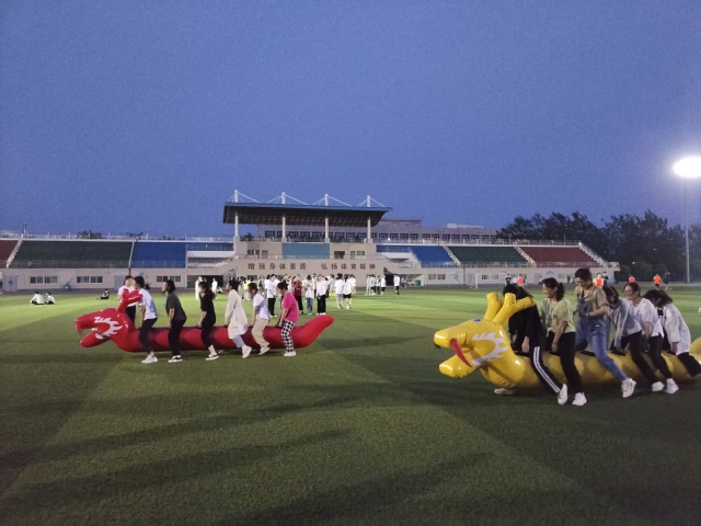 此次心理健康户外拓展活动分为“袋鼠跳”、“草地龙舟”、“同舟共济”、3个趣味项目。活动伊始,主持人高洁宣布比赛项目和规则、告知注意事项。随后,参加活动的同学们在相互打气准备,其他同学在观众席就坐,为参赛选手加油。待一切准备就绪,活动正式开始。在袋鼠跳比赛中,同学们热情饱满,在跳跃中传递勇气和力量,演绎奋斗和拼搏。同舟共济比赛中,同学们手脚并用,展现自身灵活性,一步一步克服困难向前迈进。草地龙舟进行时,双方六名队员各自就位,双手紧握龙舟上的把手、身体前倾,蓄势待发。胜利的队伍欢声一片互相,输掉比赛的队伍也没有气馁,在大家的鼓励与安慰中享受着比赛的刺激与欢乐。