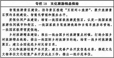 适应大众旅游时代新要求,推进旅游为民,推动构建类型多样、分布均衡、特色鲜明、品质优良的旅游供给体系,推动文化和旅游业态融合、产品融合、市场融合。提升旅游演艺、文化遗产旅游、文化主题酒店、特色节庆展会等品质,支持建设集文化创意、旅游休闲等于一体的文化和旅游综合体。依托革命博物馆、党史馆、纪念馆、革命遗址遗存遗迹等,打造红色旅游经典景区和经典线路。利用乡村文化传统和资源,发展乡村旅游。加强对当代社会主义建设成就的旅游开发,深入挖掘重大工程项目的精神内涵,发展特色旅游。加强对工业遗产资源的活化利用,开发旅游用品、特色旅游商品,培育旅游装备制造业,发展工业旅游。推动旅游与现代生产生活有机结合,加快发展度假休闲旅游、康养旅游、研学实践活动等,打造一批国家全域旅游示范区、A级旅游景区、国家级旅游度假区、国家精品旅游带、国家旅游风景道、特色旅游目的地、特色旅游功能区、城市绿道、骑行公园和慢行系统。大力发展智慧旅游,推进智慧景区、度假区建设。