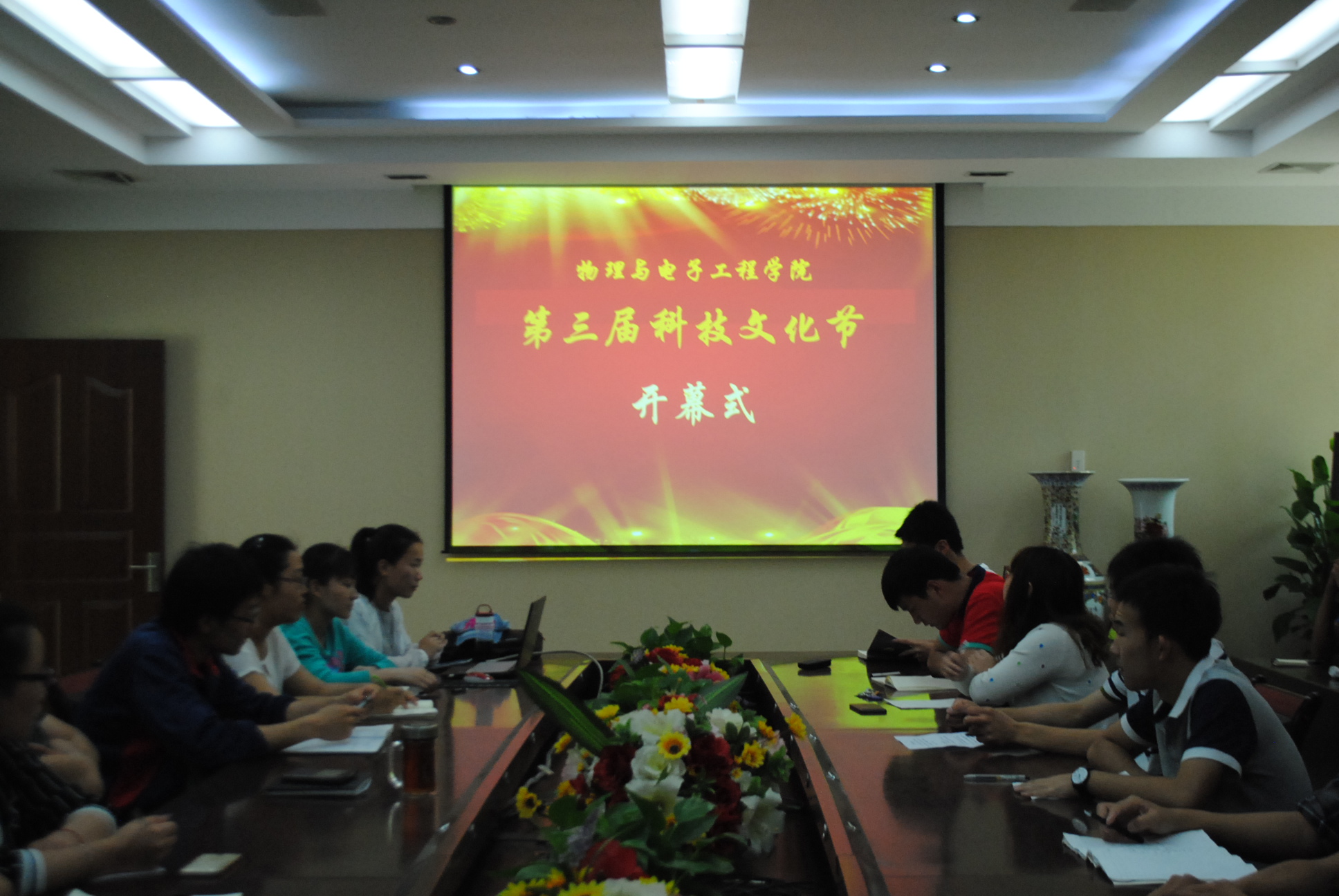 5月15日下午,物理与电子工程学院于物理北楼C103举办第三届科技文化节开幕式。本次活动由我院学生会办公室副主任史宏杰负责主持工作,院党委副书记陈明银和团委书记刘博出席了本次开幕式。