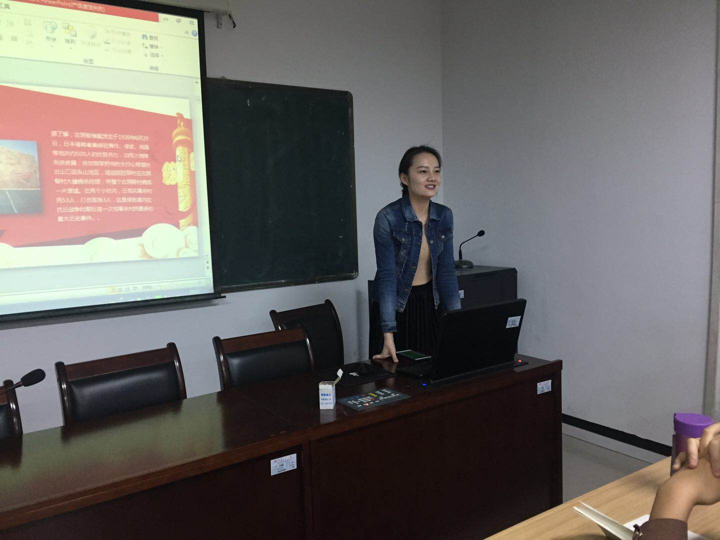 活动伊始,2017级学科教学思政专业研究生王雨峰同学讲述自己参观毛泽东故居的收获与感悟。他结合自己在参观过程中所拍的照片讲述了毛泽东同志的学习经历以及在革命时期中的成长,使在座同学深刻理解了毛泽东同志为我们党和国家做出的突出贡献。紧接着,2017级马克思主义理论专业研究生李洁同学以“古洞窑惨案”为主题与大家分享在参观古洞窑这一红色基地后的感想,她呼吁同学们不仅要时常回顾历史、更要去回顾那些发生在身边的、不太为人所知的历史。