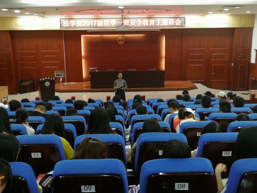 为帮助学生学习安全知识,提高安全常识,树立安全防范意识。5月15日,法学院2017级法学一班于模拟法庭开展了“知识守护生命,安全铸就未来”主题团日活动。2017级辅导员康东书,兼职辅导员郝梦臣及法学一班全体成员出席本次团日活动。