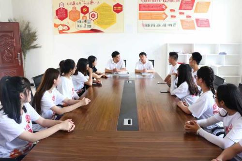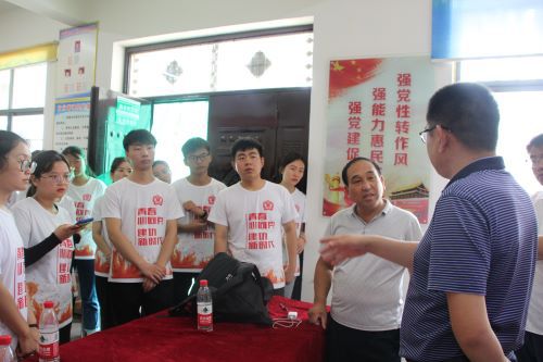 在修武县政法委副书记武王贵热情地陪同下,院党总支书记董建民,副书记邓晓刚和电子系主任张瑜来到大位村,了解调研团同学们的调研情况。董建民一行人走进村两委会中心,了解当地党组织、党员在党建工作中的经验和方法。县委组织部副部长郑明星表示,近年来,大位村积极申报项目,多方筹集资金,大力推进农田水利工程,推动了新型农业的发展,并先后建成了千亩育种基地、食用菌生产基地、特种动物养殖基地,并先后投入资金5万余元建成了老年活动中心,进一步丰富群众的文化生活。一直以来,大位村“两委”会通过积极组织实施一系列活动,充分发挥党建工作的引领作用,实现党建工作与企业发展相互融合、互促共进,进而推进美丽乡村的科学发展。