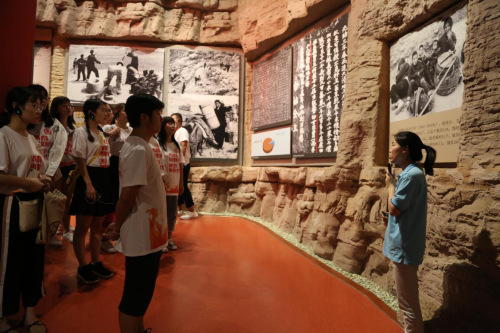 调研团先后前往红旗渠纪念馆、青年洞,学习和了解红旗渠背后的故事,感悟红旗渠精神。上世纪六十年代,十万修渠大军凭借一双手和一锤一钎,在巍峨太行的悬崖峭壁间,修成的一条全长1500公里长的人工天河——红旗渠,熔铸了“自力更生、艰苦创业、团结协作、无私奉献”的红旗渠精神。