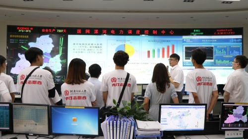 实践队在供电公司党政办主任黄一然的带领下先后参观了河南协鑫光伏科技有限公司、天壕新能源有限公司、邵陵500千伏变电站加装2×300兆乏调相机工程、国网河南省电力公司电力科学研究院、国网漯河电力调度控制中心五个地点。