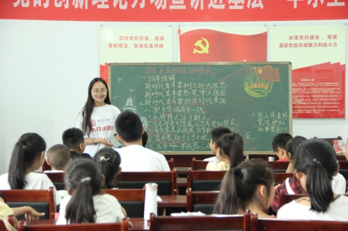 五四风雷,激荡百年。五四运动以来的100年,是中国青年一代又一代连续奋斗、昂首前行的100年,是中国青年用青春之我创造青春之中国、青春之民族的100年。为缅怀五四先驱崇高的爱国情怀和革命精神,大力弘扬以爱国主义为核心的伟大民族精神。近日,数学与信息科学学院“燃教育之火,筑前行之路”教育关爱服务团在新乡市牧野区丰乐里村以演讲比赛、情景剧、诗歌朗诵等为载体举办系列活动,纪念五四运动一百周年,为祖国的腾飞喝彩。