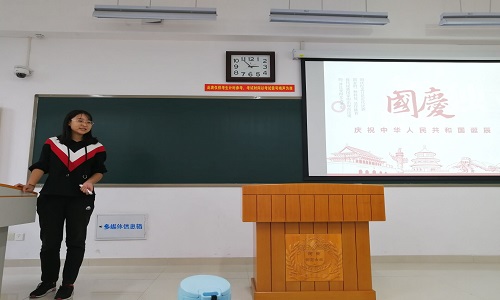 活动开始,团支书禹震宏向大家概述了70年来中国发生了翻天覆地的变化。中华民族迎来了从站起来、富起来到强起来的伟大飞跃。他还阐述了中国梦的概念,并引导团员们思考在中国梦的实现过程中作为当代大学生能为祖国做些什么,明确了团员应该具备的综合素质和应该承担的历史使命,激发了广大同学的责任感与爱国热情。团员郝书艺通过“相隔70年的两场阅兵”和“中国经济变化”两个视频向大家具体展示了祖国正在越来越快,越来越好地发展。