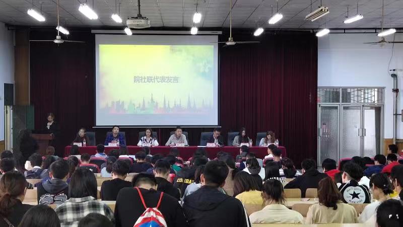 10月12日,我校学生社团大会在万人餐厅三楼多功能报告厅召开。校团委副书记张合、创新实践部部长孙晓出席会议。校院两级学生社团联合会(学生社团发展中心)学生骨干及全校学生社团代表共300余人参加了本次会议。