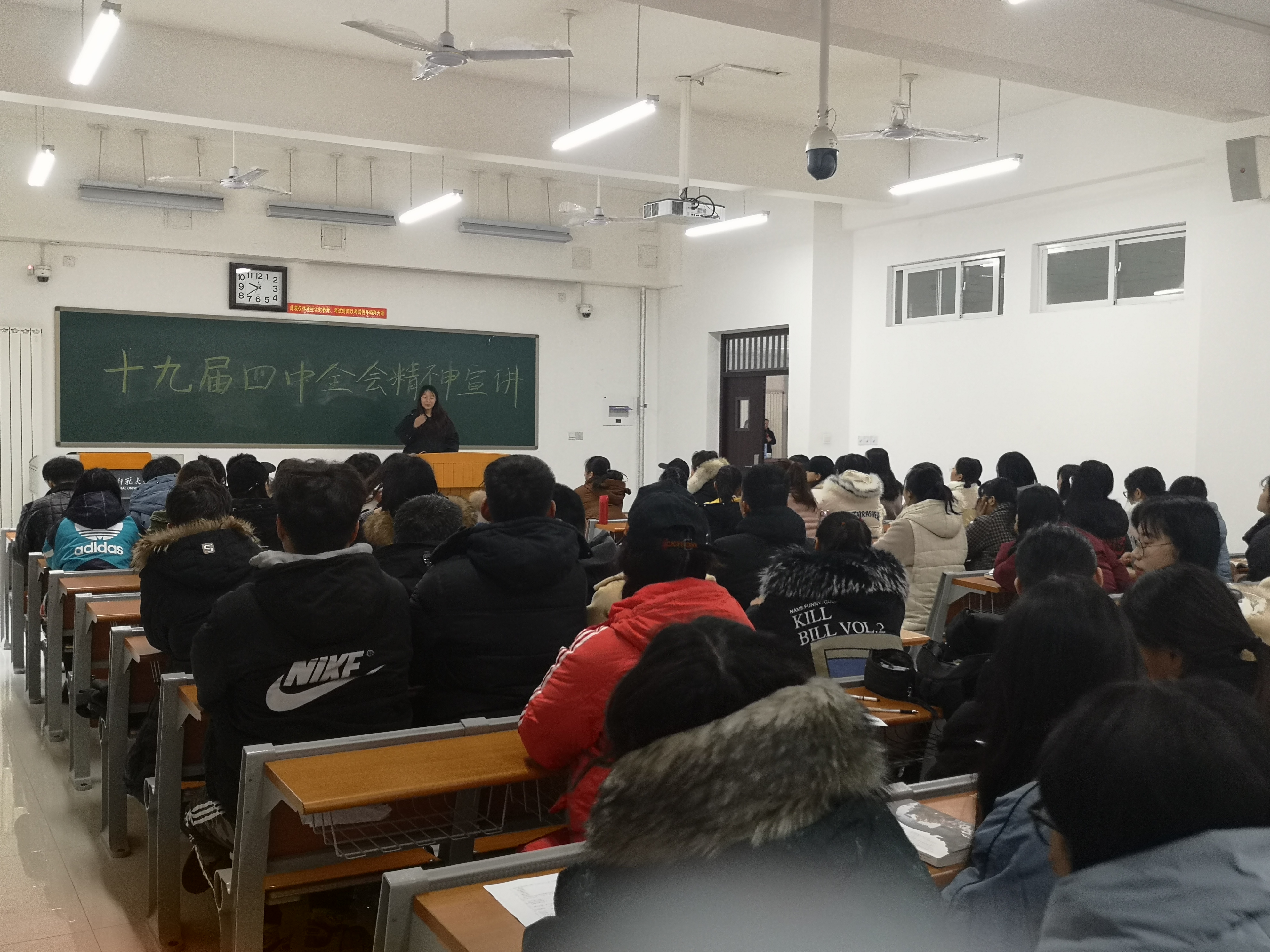 党的十九届四中全会已胜利落下帷幕,其报告内容深刻,内涵丰富,体育学院共青团员之间涌起一阵学习热潮、评论热潮和践行热潮。为全面了解全会内容,深入贯彻落实党的十九届四中全会精神, 12月5日中午,体育学院于东区综合楼327教室举行“学习党的十九届四中全会精神”主题团日活动,辅导员刘广宣及2019级近300名团员到场聆听学习、交流感悟。