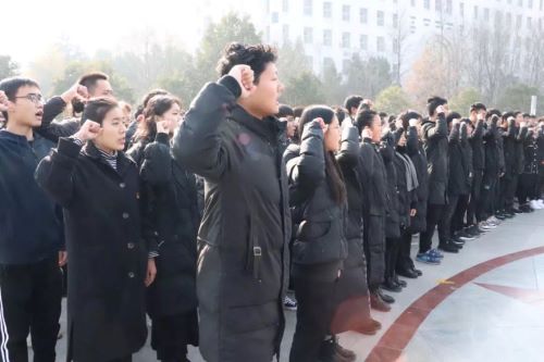 12月13日中午,我校学生社团联合会于校训石广场举行南京大屠杀死难者国家公祭日默哀宣誓活动,广大学子参与其中。
