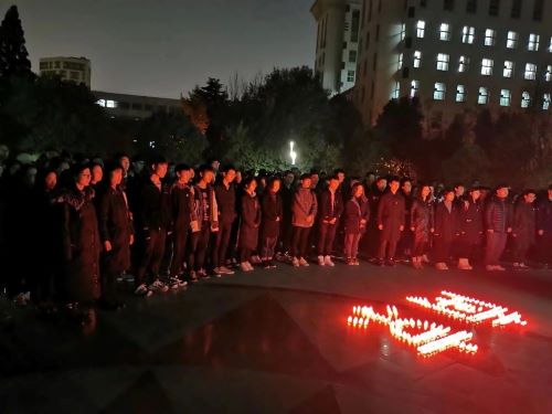 烛光摇曳,思念冗长。12月13日晚,校社联于校训石广场举办烛光祭活动。