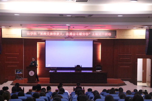 为响应校、院团委号召,法学院于2020年10月10日在模拟法庭成功举办以“紧跟党旗做新人,拼搏奋斗耀青春“为主题的团日活动。在法学院辅导员马淑明,兼职辅导员吴倩歌以及各班团干的组织下,全院2020级300余名共青团员于下午四点半准时到场参加会议。