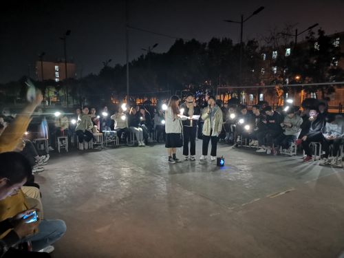 本次活动中,2019级学生代表耿初阳、席悦以及2020级学生代表杨笑雨分别讲述暑期实践经历,其中耿初阳分享自己暑假参与的“三下乡”实践经历,表示自己在实践中不仅团队意识得到增强,还收获了不可多得的友谊。而后,现场开始分发零食等小礼品,双方共同进行了才艺展示,闪烁的手机灯光和活力四射的音乐将现场气氛带到高潮。随后,2019级俊甫计划生周子航、徐玮蔚和康玥祺分别从学习、生活以及兴趣爱好等方面讲述了自己的心得体会,共同表达了对两年级能够和谐相处,共创辉煌的愿望。周子航向新生讲述,迈入大学不能只会学习,更重要的是培养自己的综合能力,将兴趣爱好发展下去;要真切地认识自己,明确的规划自己的人生方向。活动最后,双方人员一同抽取了祝福卡片,卡片上温馨的话语温暖了微凉的秋夜,为活动画上了完美的句号。