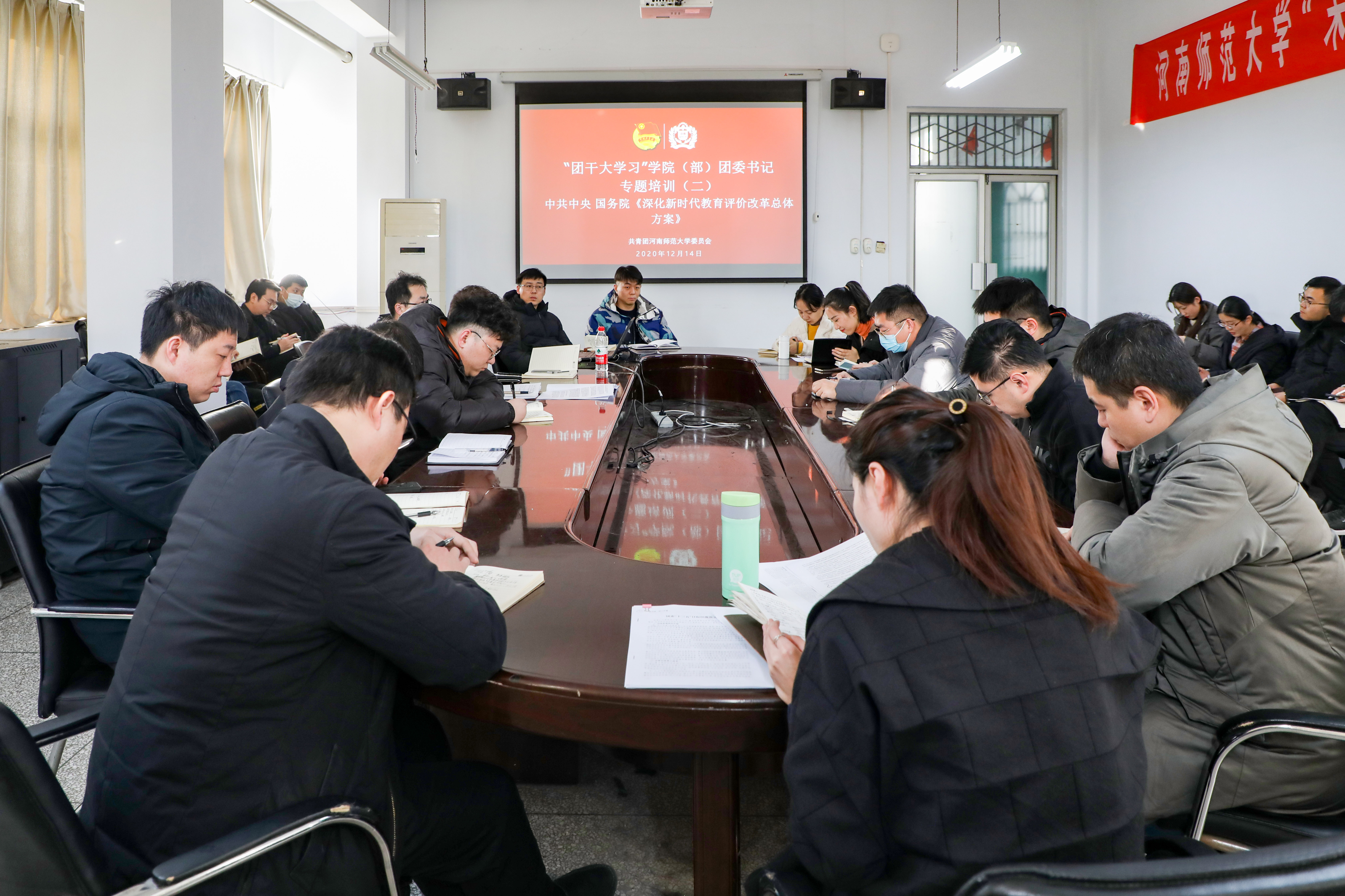 12月14日下午,我校第二次“团干大学习”学院(部)团委书记专题培训在校团委会议室举行。校团委全体人员,各学院(部)团委书记、负责人参与培训。会议由校团委副书记唐新主持。