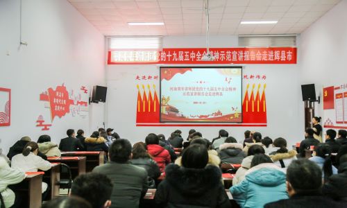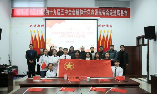 12月22日下午, 由我校承办的河南青年讲师团党的十九届五中全会精神示范宣讲报告会在辉县新时代文明实践中心举办。团省委宣传部部长孙冬青出席活动。我校团委负责人,理论宣讲团成员,辉县相关单位团干部、团员青年代表100余人参加了本次宣讲。