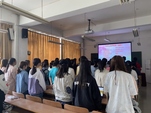 活动开始,团支书戚馨升首先介绍活动目的、主要内容和重要意义。随后,团员全体起立,共唱国歌和共青团团歌,并重温入团誓词。而后,团员刁薇带领大家了解习近平总书记考察清华大学时的讲话,并一同学习中国共产党领导教育的基本政策和历史逻辑。期间,团员们共同聆听红色歌曲《祖国我为你骄傲》,大家认真观看,仔细聆听,感受视频所传达的爱国心。
