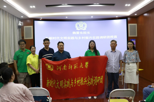 会议伊始,由林安春宣读《社会事业学院大学生暑期“三下乡”社会实践活动开展及学生安全暂行管理方法》,再次强调社会暑期实践调研的安全问题。安全问题重中之重,是大学生实践调研的前提和基础,没有生命就等于失去一切,社会实践的顺利进行必须保证实践团队的生命安全。接下来,由魏雷东为新时代文明实践与乡村振兴实践调研团授旗。
