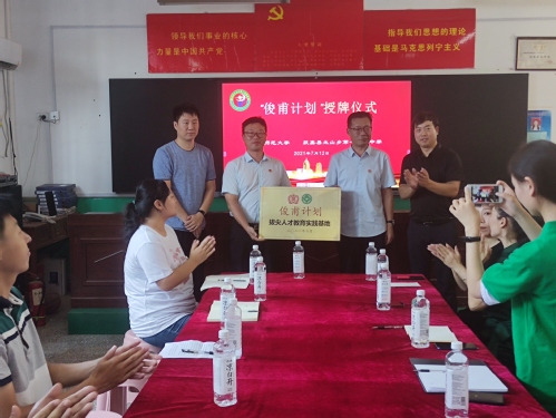 首先,双方介绍出席人员,学院团委书记曹锟介绍了学院的整体发展情况,特别是对“俊甫计划”卓越教师班的开办背景及本次支教实践活动的目的、意义进行了重点介绍。随后,队员丁泽锐进行代表发言,他对给予本次支教服务信任及支持的各位领导、老师表示由衷的感谢,立志在“三下乡”暑期实践活动中发挥专业特长,积极投身科普支教工作。双方举行授牌后,校团委创新实践部部长孙晓进行讲话,他对“俊甫计划”拔尖人才教育实践基地的建立表示祝贺,对参与本次支教服务活动的同学提出三点建议,一是希望同学们在工作过程中集思广益、群策群力,充分发挥百年化院的光荣传统;二是希望同学们进一步创新工作方式、方法,精心做好谋划和落实;三是希望同学们严格遵守工作纪律,牢固树立安全意识。
