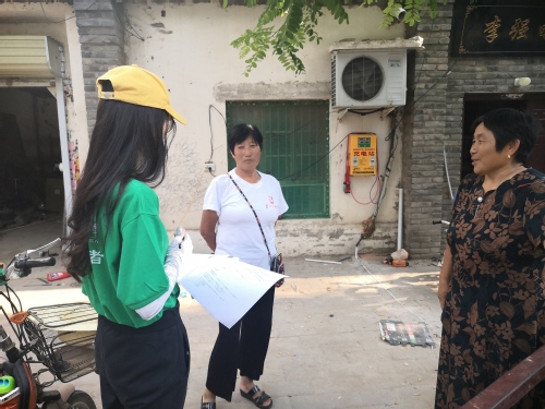 为见证脱贫攻坚成效,深入了解兰考县张庄村的经济发展状况,7月17日,外国语学院“青春礼赞庆华诞,追望‘译’道践《宣言》”实践调研团第二分队的实践队员们实地走访当地村民,分发调查问卷,并就问卷中的的相关问题与村民进行沟通交流。